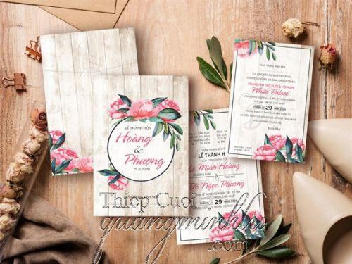 Thiệp cưới hình chữ nhật đứng , giấy fort in offset. Ruột đôi
