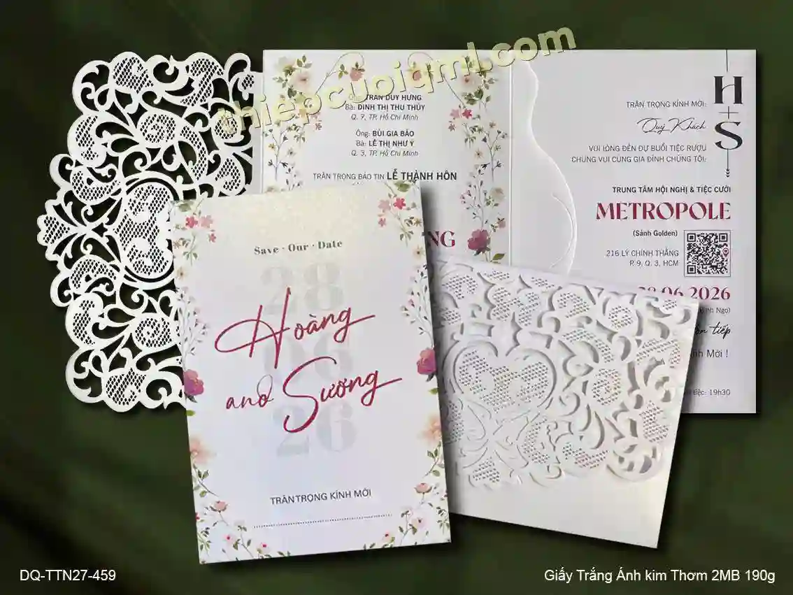 Linh hoạt trong thiết kế: Dễ dàng tùy chỉnh thiết kế theo sở thích của cặp đôi, có thể chọn phong cách gấp hình chữ nhật đứng, ngang, hoặc hình vuông.