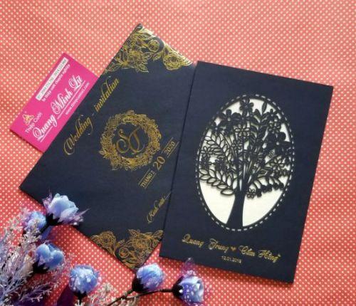 Mẫu thiệp cưới cắt laser này đang rất hot. Mẫu thiệp cưới đẹp nhờ các nét cắt laser tinh tế, thiệp còn dùng các chất liệu giấy gam màu được nhiều bạn trẻ yêu thích .
