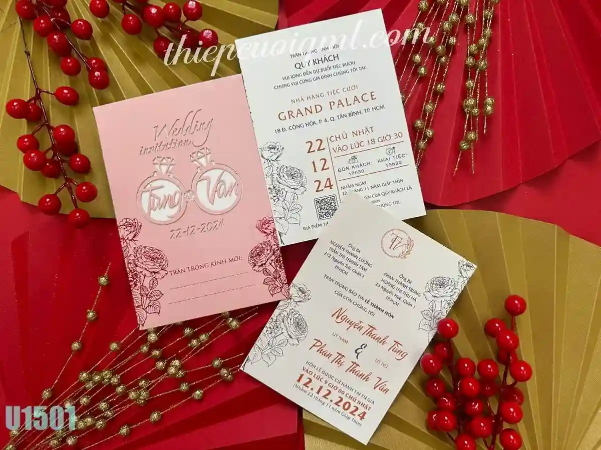 Thiệp cưới laser U1501 Hồng ánh kim giá 5.100đ/thiệp