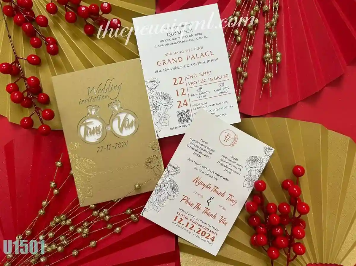 Thiệp cưới laser U1501 Nhũ đồng giá 5.100đ/thiệp ,