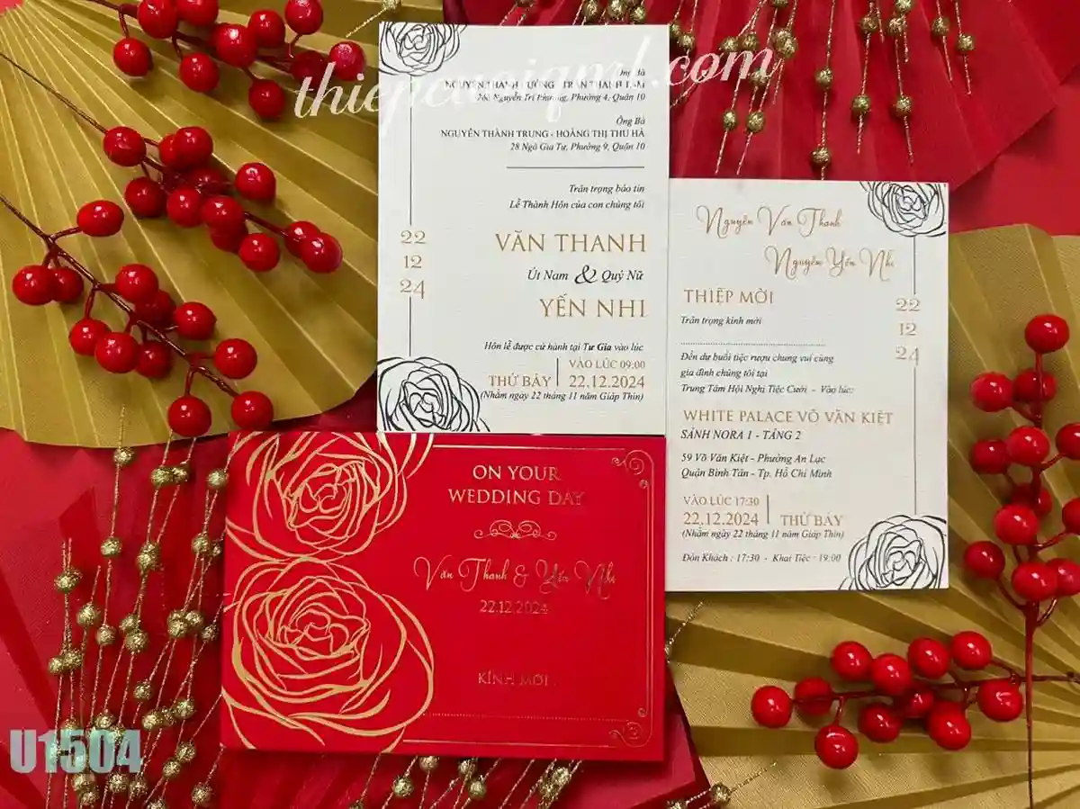 Thiệp cưới laser U1504 Đỏ nhung giá 4.200đ/thiệp