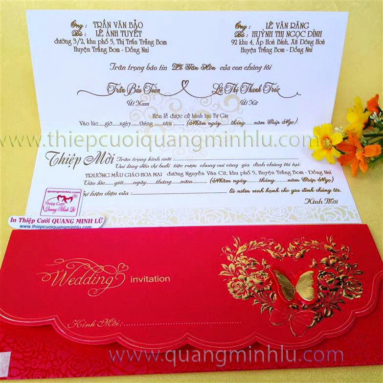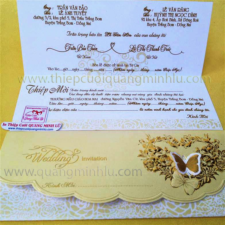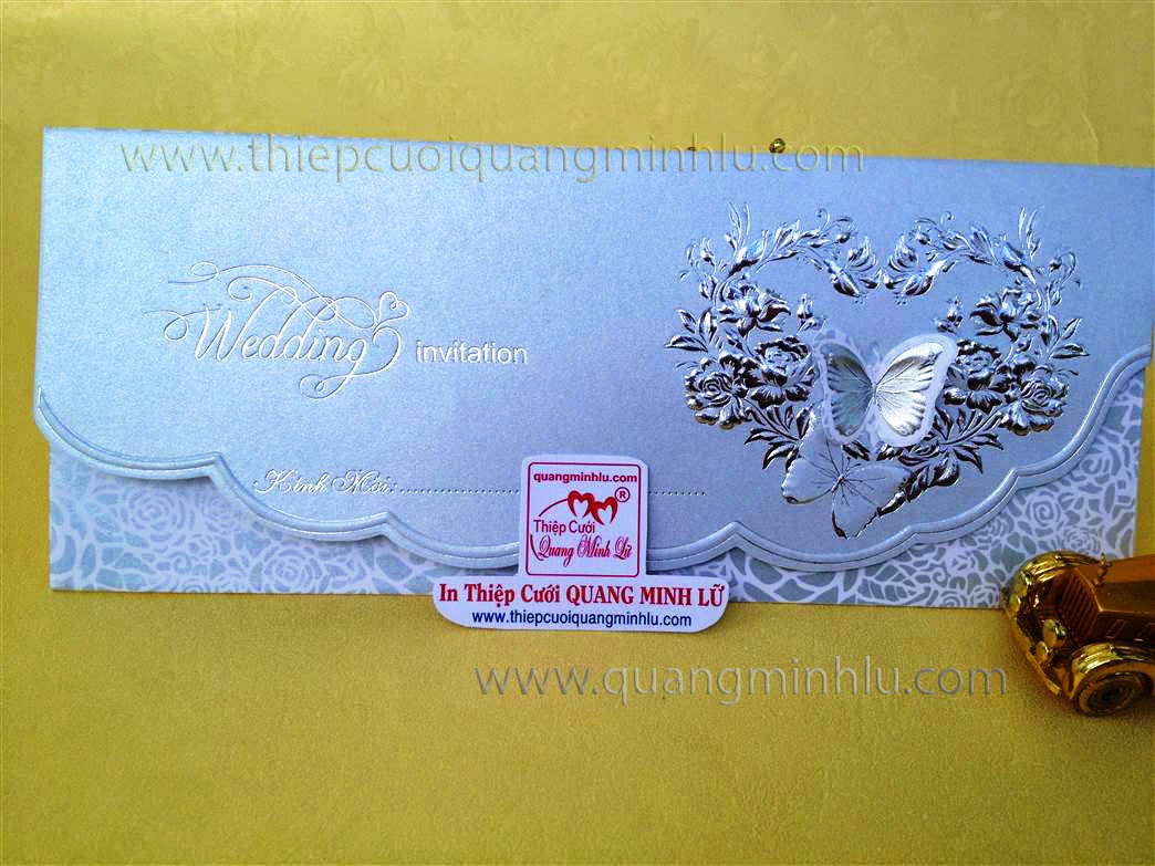 Vẫn là thiệp cưới vintage nhưng kỹ thuật in lụa lên nền giấy để tạo các hoa văn thật đặc sắc. Thay vì thể hiện các họa tiết hoa văn cho thiệp cưới phong cách vintage bằng phương pháp in offset, đợt mẫu kỳ này lại dùng phương pháp in lụa. Các bạn quan sát mẫu thiệp sẽ thấy tấm thiệp theo phong cách vintage sẽ óng ánh và sang trọng hơn nhờ lớp mực camay. Mời các bạn xem quaGiá tiền niêm yết cho số lượng thiệp in từ 300 thiệp trở lên