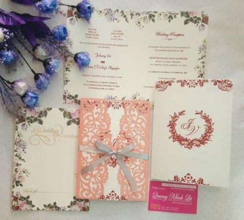Mẫu thiệp cưới lý thái tổ A1. Thiệp cưới đẹp màu vàng đồng kết hợp màu kem trắng